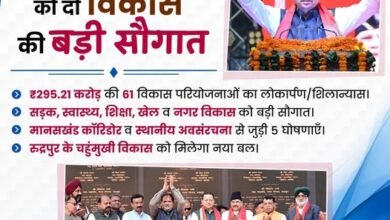 ऊधमसिंह नगर को ₹295.21 करोड़ की सौगात, 61 विकास परियोजनाओं का लोकार्पण और शिलान्यास