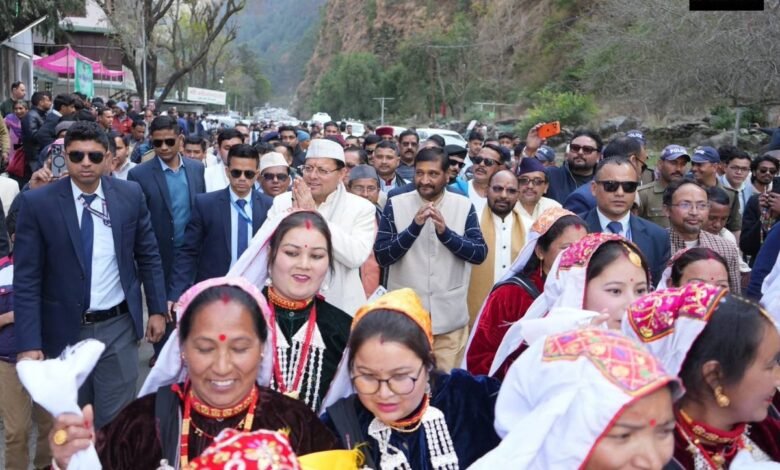 चमोली के बिरही में जनजाति समागम-2026, मुख्यमंत्री पुष्कर सिंह धामी को दोखा और ऊनी टोपी भेंट